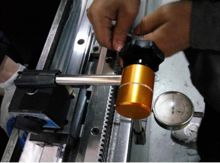 Обнаружение установки и фиксация направляющей железной дороги и стойки. Профессиональные специалисты собирают такие важные точные детали, такие как направляющие рельс и стойку, и регулируют их с помощью индикатора циферблата, чтобы гарантировать, что стойка и шестерня собираются должным образом.